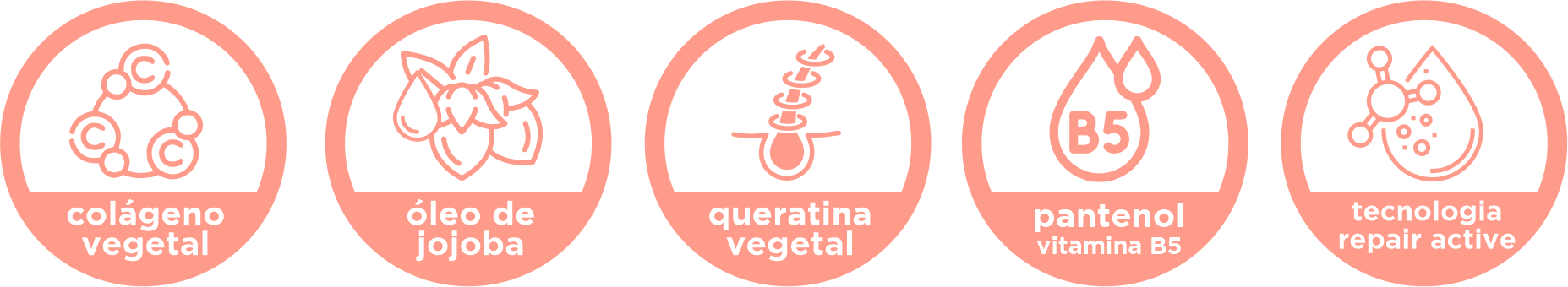 Sua fórmula rica em proteínas e nutrientes reestrutura a fibra capilar de dentro pra fora, recuperando a força, o brilho e a maciez perdidos com químicas, colorações e uso excessivo de calor.
